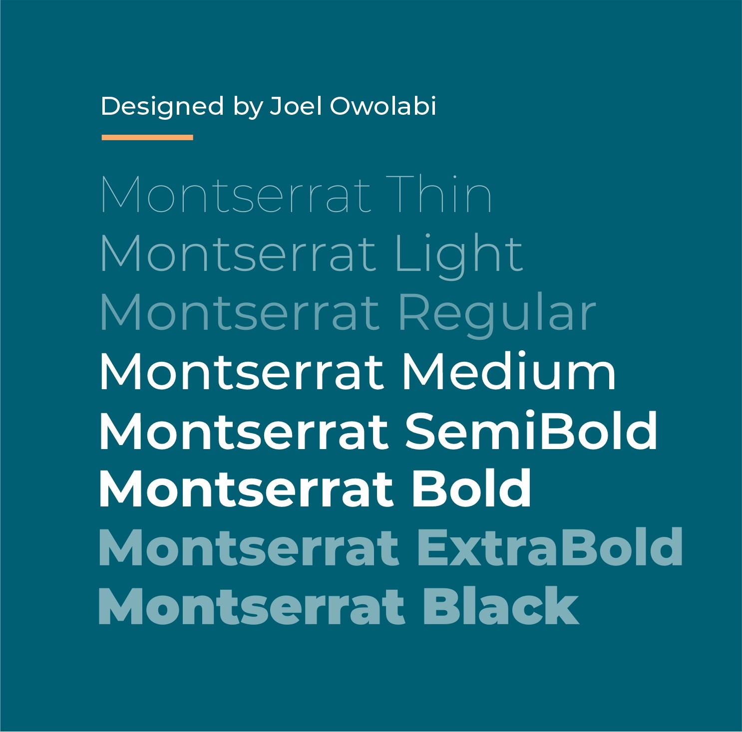 ranging from Thin to Black weights. Montserrat's clean, geometric forms provide excellent readability and a modern contrast to the retro logo, ensuring versatility across various applications.