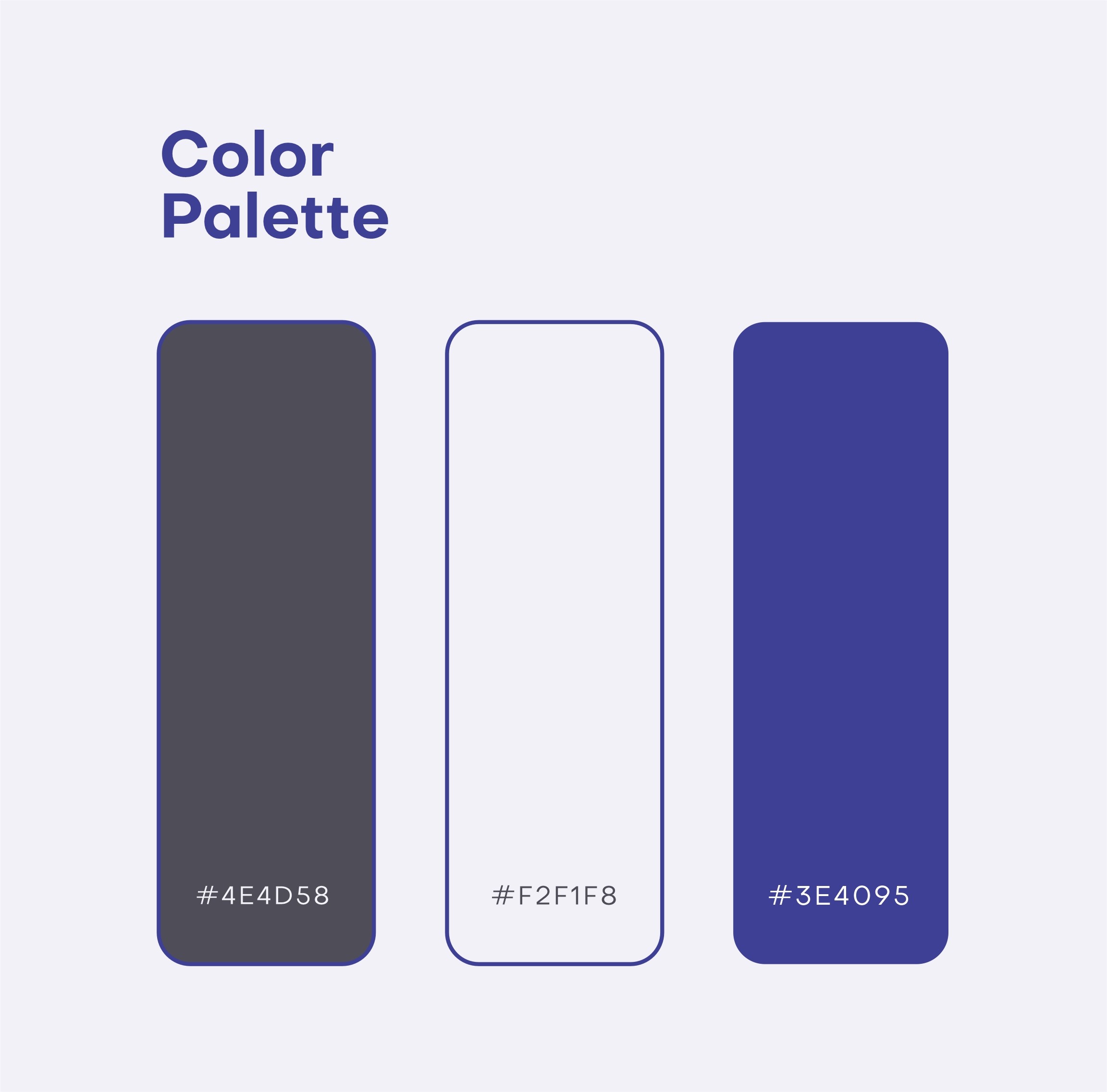 (#3E4095), a light off-white (#F2F1F8), and a dark gray (#4E4D58).